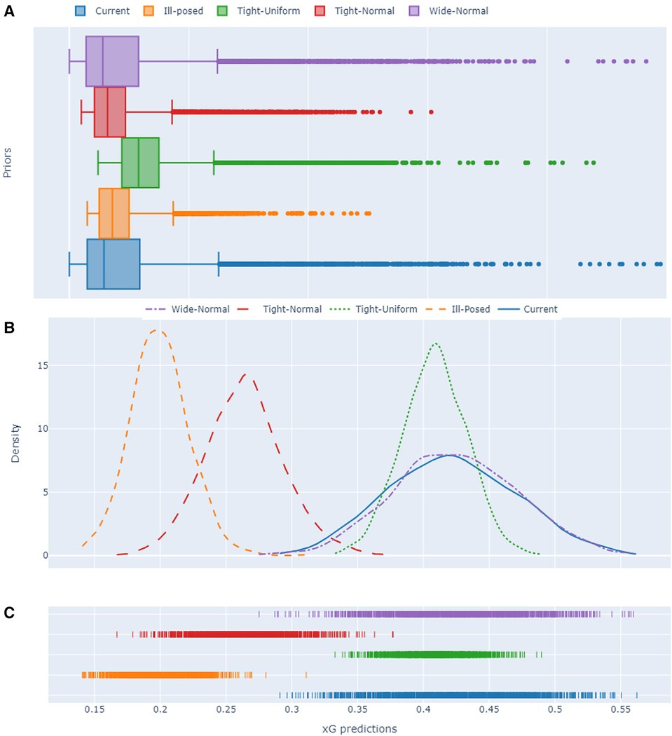 Sensitivity analysis of prior selection on Bayesian xG predictions.