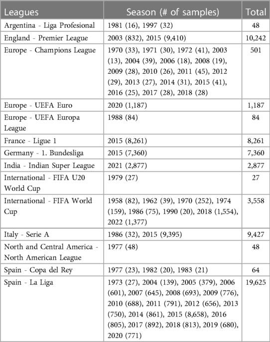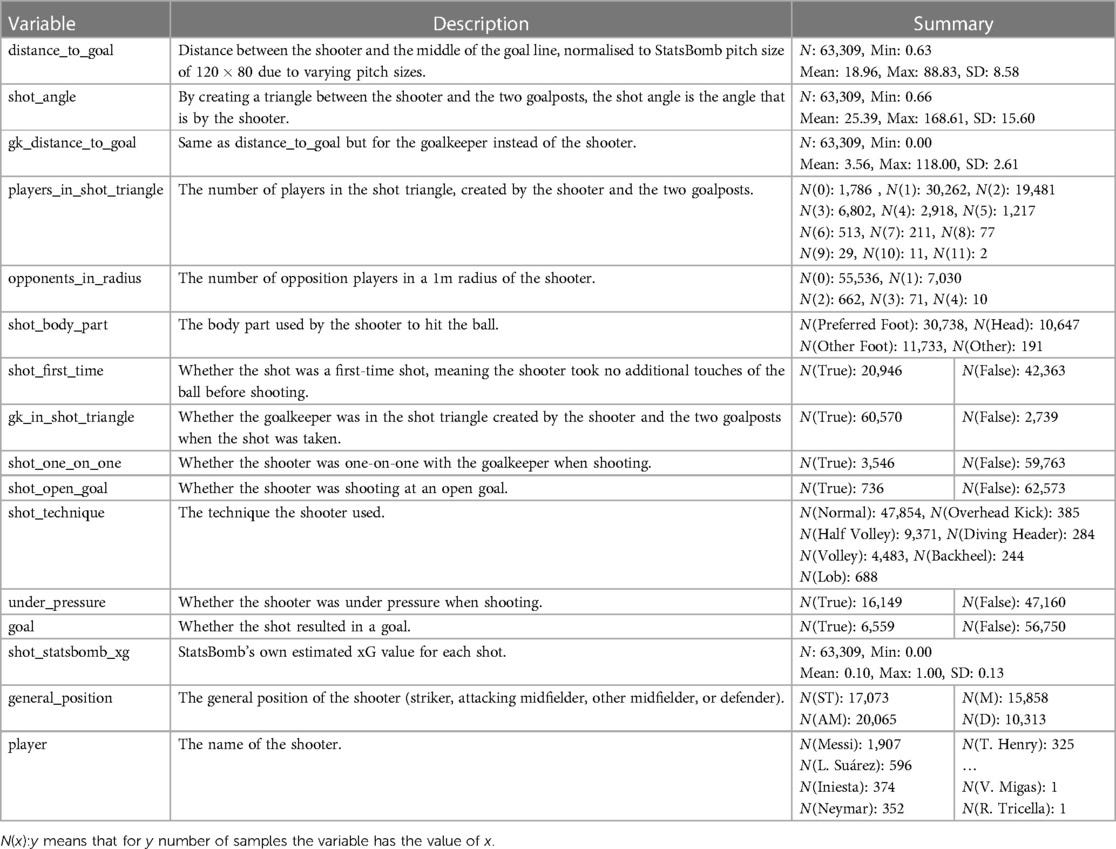 The dataset used in this study consists of 63,309 open-play shots from StatsBomb’s publicly available event data, extracted using the StatsBombPy Python package. The data spans multiple leagues and seasons, with 42 features per shot, including location, shot characteristics, and contextual information.