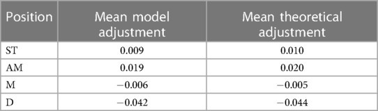 General Position: α={ST: 2, AM: 1, M: 0, D: -2} (strikers have highest expected goal probability).